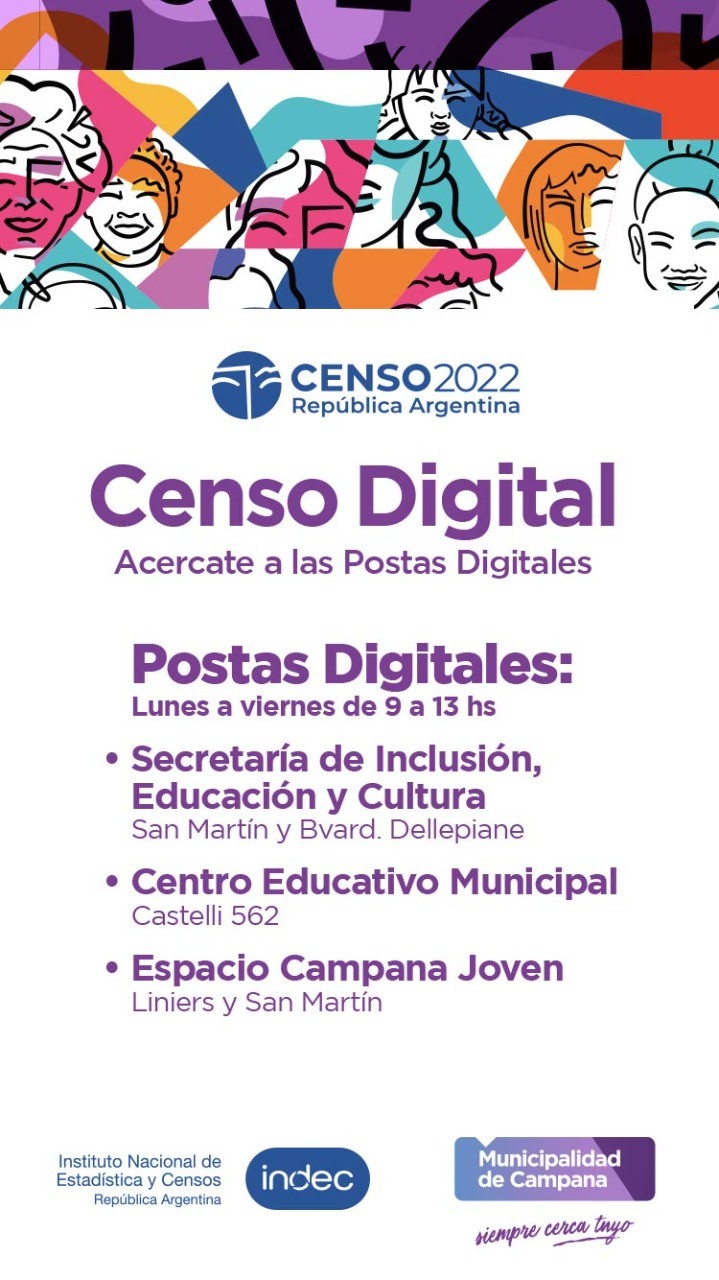Así, para que los vecinos puedan completar el formulario online, dispuso postas digitales fijas y móviles, donde personal municipal capacitado brindará asesoramiento a todos los que deseen realizar el Censo 2022 de forma virtual y, por algún motivo, no puedan hacerlo por sus propios medios.