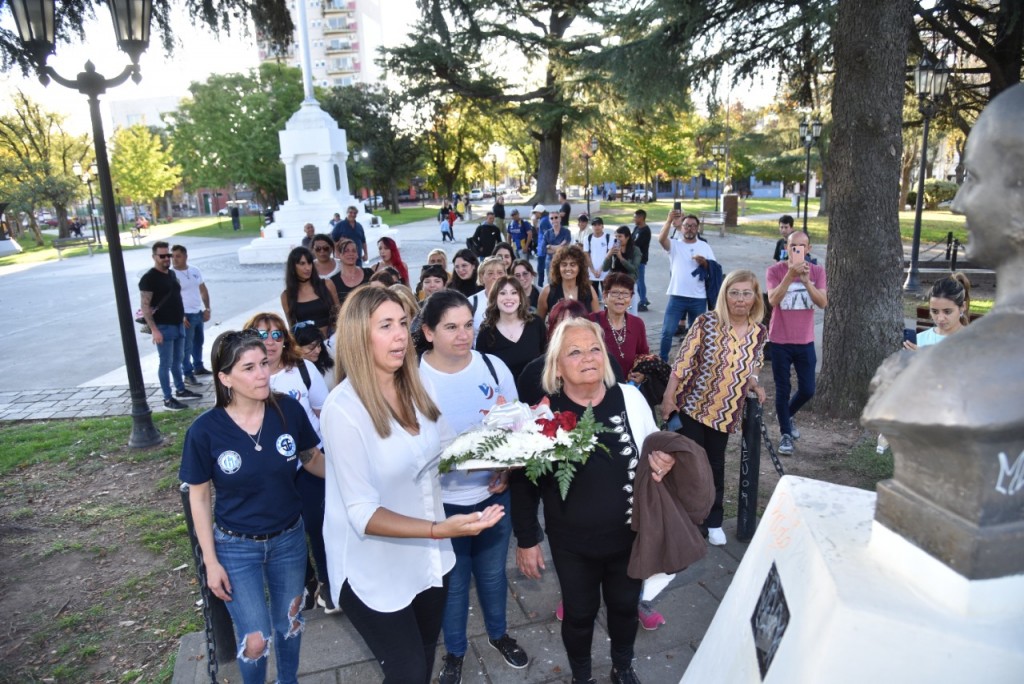 Luego del almuerzo en el club Alumni, que se extendió pasadas las 16, los cuatro oradores y un grupo de militantes se trasladaron hasta la plaza Eduardo Costa para depositar una ofrenda floral en el busto de Eva Duarte de Perón, en conmemoración de su natalicio, el 7 de mayo de 1919. “Evita, fundamentalmente, tenía conciencia de clase y por sobre todo, de la puja distributiva en juego. Me quedo con la Evita de la lucha cotidiana contra la oligarquía y por la reivindicación de los derechos de los trabajadores y las trabajadoras. También, fue pionera en defender los derechos de la mujer. Ahí tenemos el voto femenino, y también la patria potestad compartida, que son parte de su extenso y prolífico legado”, reflexionó el presidente del PJ Campana, Carlos Ortega.