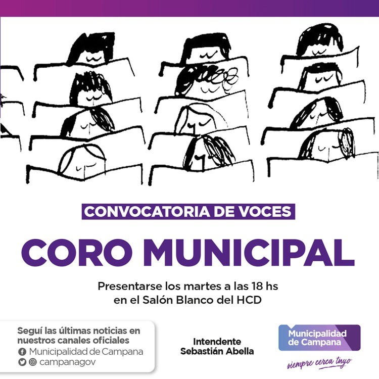 “Queremos más voces campanenses para nuestro coro municipal. De la mano del maestro Stcherbina, podrán crecer como grandes músicos. Y además de aprender, pueden participar de actos, viajes, presentaciones que enriquecerán el camino iniciado”, destacaron desde la Secretaría de Inclusión, Educación y Cultura del Municipio.