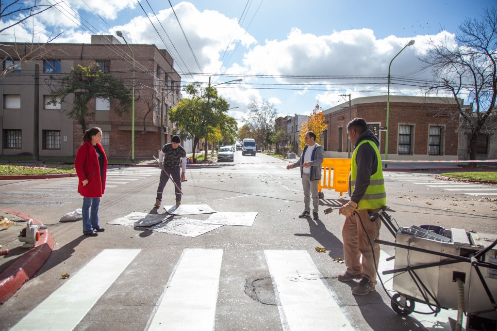 Como parte de las acciones para mejorar la seguridad vial en la ciudad, el Municipio comenzó una nueva etapa de demarcación y señalización horizontal de sendas peatonales y cordones de calles y avenidas.