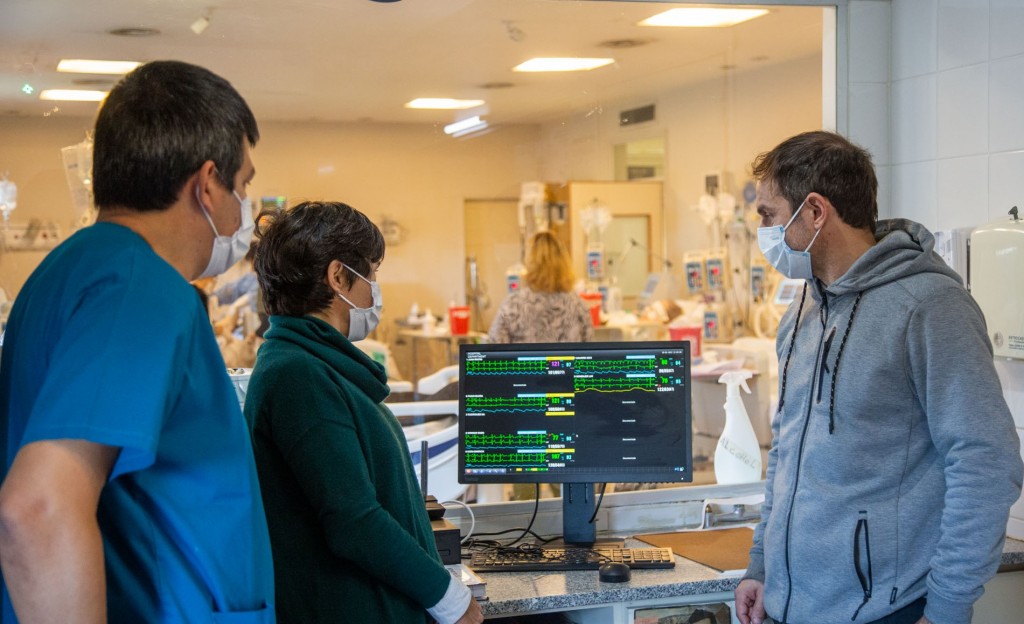Durante su recorrida por la Terapia Intensiva, Abella estuvo acompañado por la secretaria de Salud, Cecilia Acciardi; la subsecretaria, Eleonora Penovi; el director del Hospital San José, Daniel Tonelli; y la directora de Desarrollo Estratégico, Cecilia Bernatzky.