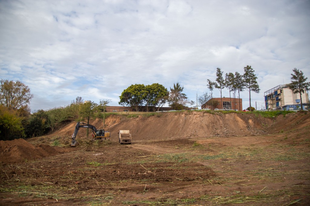 El intendente Sebastián Abella supervisó el desarrollo del operativo que involucró una maquina retroexcavadora y camiones con batea para realizar el desmonte y desmalezamiento del terreno.