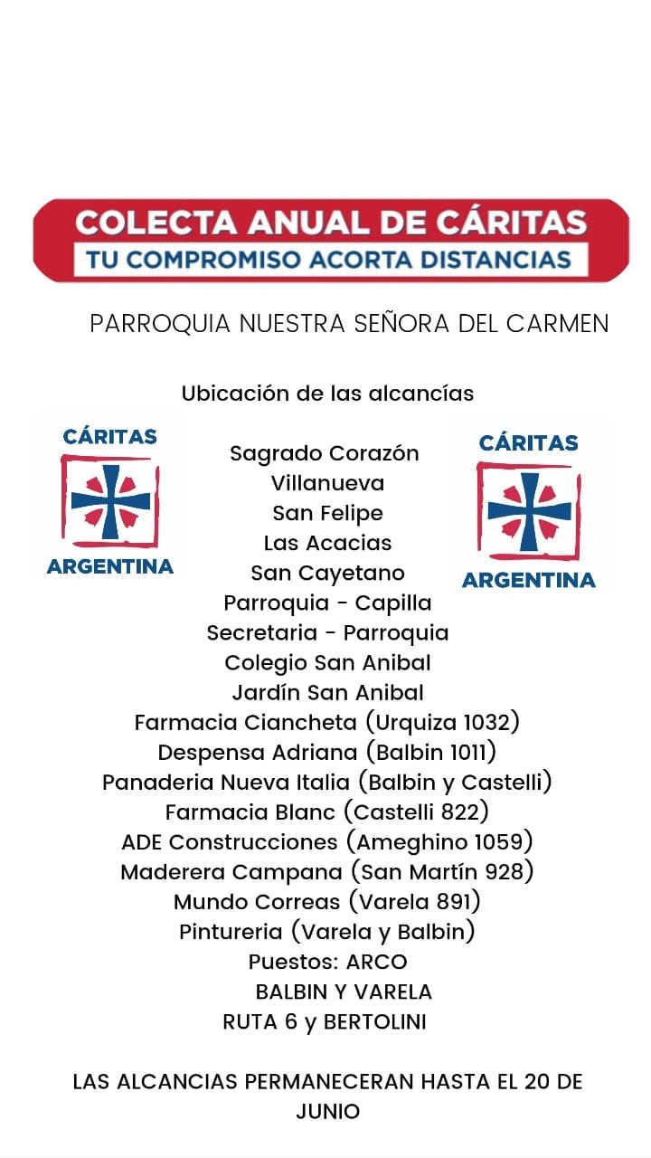 Ya ha comenzando con las alcancías ubicadas en diferentes lugares de nuestra Ciudad donde los vecinos pueden colaborar con sus donaciones, además el domingo 12 se ubicarán alcancías en el Arco, y también en : Avenida Balbín esquina Varela y Ruta 6 esquina Bertolini con personas debidamente identificadas.