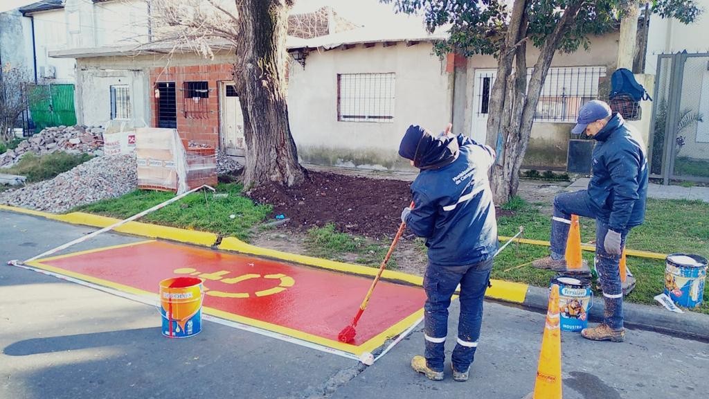 Ahora se realizó la pintura de color amarillo de los cordones de colectora norte, a la altura del barrio La Josefa, como también de distintos espacios reservados para el estacionamiento de personas con discapacidad.