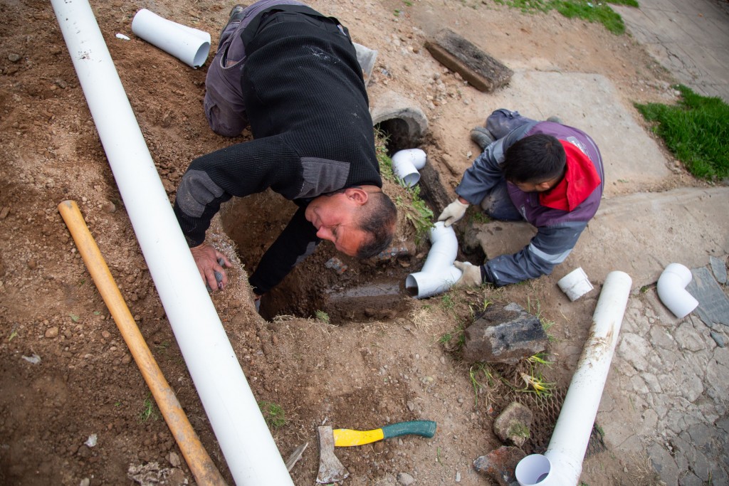 Estas tareas, que permiten conectar el tendido de la red desde el interior de las viviendas hasta la red troncal, tienen el objetivo de expulsar las aguas grises a la estación de bombeo evitando que se arrojen a la vía pública.