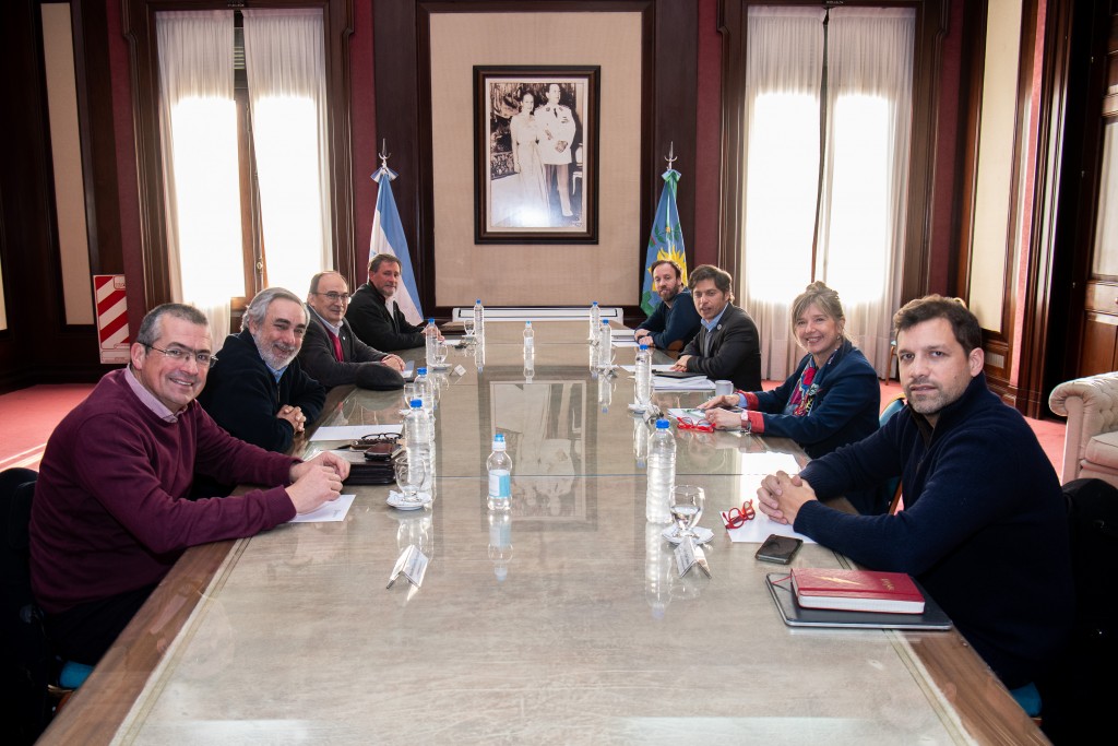 El gobernador de la provincia de Buenos Aires, Axel Kicillof, encabezó esta tarde una reunión con los intendentes de Trenque Lauquen, Miguel Ángel Fernández; de Suipacha, Alejandro Federico; de Saladillo, José Luis Salomón; y de Rauch, Maximiliano Suescún. Participaron también la ministra de Gobierno, Cristina Álvarez Rodríguez; el ministro de Hacienda y Finanzas, Pablo López; y el vicejefe de Gabinete, Juan Pablo de Jesús.