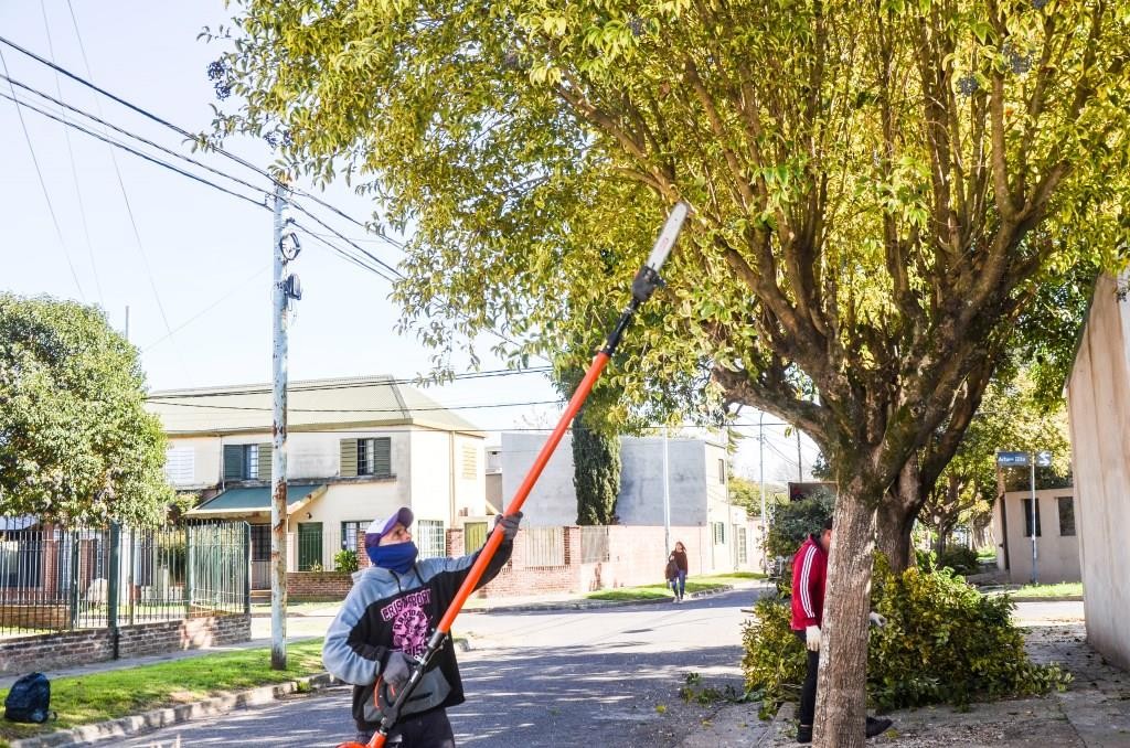 Los trabajos fueron concretados por una cuadrilla de la Secretaría de Espacio Público con el objetivo de reforzar la seguridad evitando que las ramas de los árboles obstaculicen las luces de la vía pública.