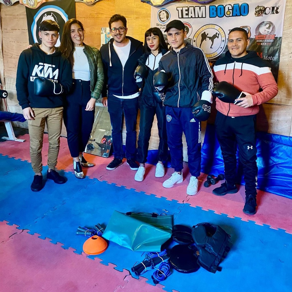 Alejo Sarna junto a Soledad Calle fueron quienes se acercaron al club “Team Bogao” para conocer a Gastón y Érica, sus dueños, y para hacerles entrega de material gestionado ante la Secretaría de Deportes de la Nación que permitirá fortalecer la preparación de atletas de alto rendimiento y profundizar su trabajo social e inclusivo.