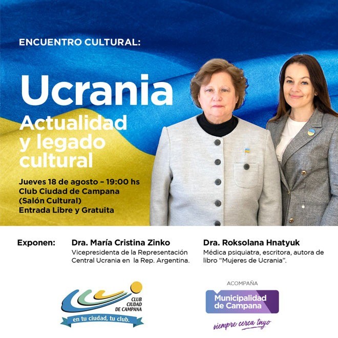 El encuentro, titulado “Ucrania: Actualidad y Legado Cultural”, está pautado para las 19 en el Salón Cultural del Club Ciudad de Campana (Chiclana 209), con entrada libre y gratuita, y tendrá como moderador al periodista Mariano Ruiz.