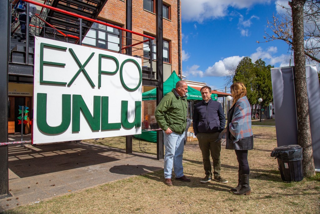 Junto al director del Centro Regional UNLU, Hernán Pirsch, y la vicedirectora de la institución, Mercedes Carazo, el jefe comunal recorrió las instalaciones donde se emplazaron distintos stands.