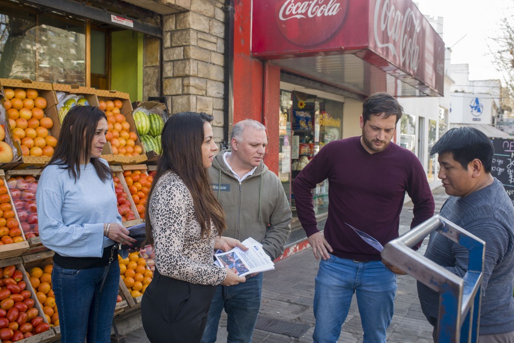 Los concejales de Juntos recorrieron este jueves por la mañana la avenida Mitre para informar a los comerciantes sobre el beneficio de eximición del 50% de la Tasa de Seguridad e Higiene impulsada por el Municipio.