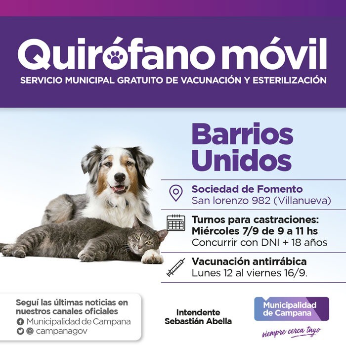 Debido a la demanda de los vecinos, la Dirección General de Políticas y Desarrollo Sostenible del Municipio informa que el quirófano móvil seguirá una semana más en Barrios Unidos.