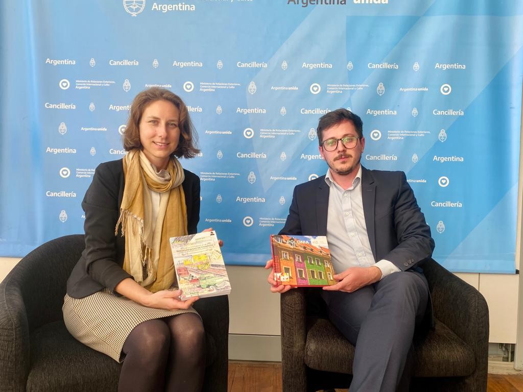 Fue a partir de una visita de la embajada que recibió el Director Alejo Sarna en la Cancillería, donde se realizó un intercambio cultural de libros.