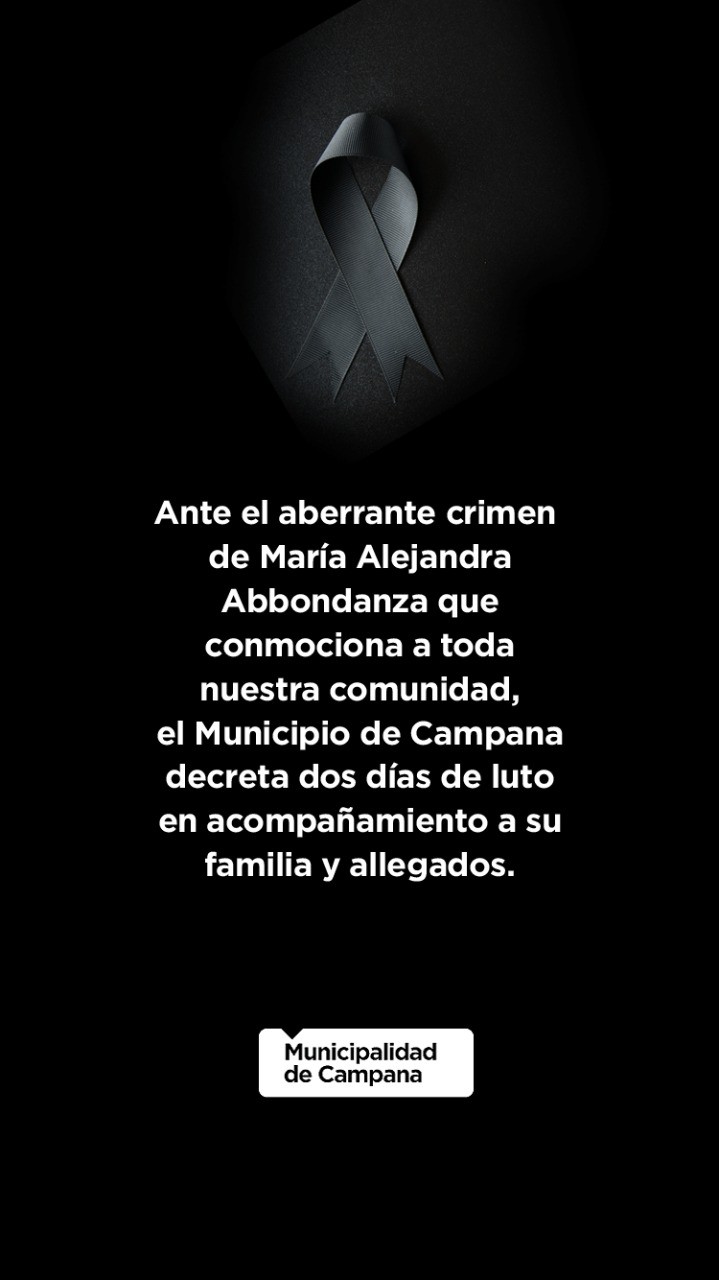Debido al aberrante crimen de María Alejandra Abondanza ocurrido en el día de ayer el Municipio decretó dos días de luto.