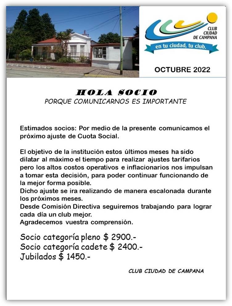 El Club Ciudad de Campana comunica el aumento de su cuota social