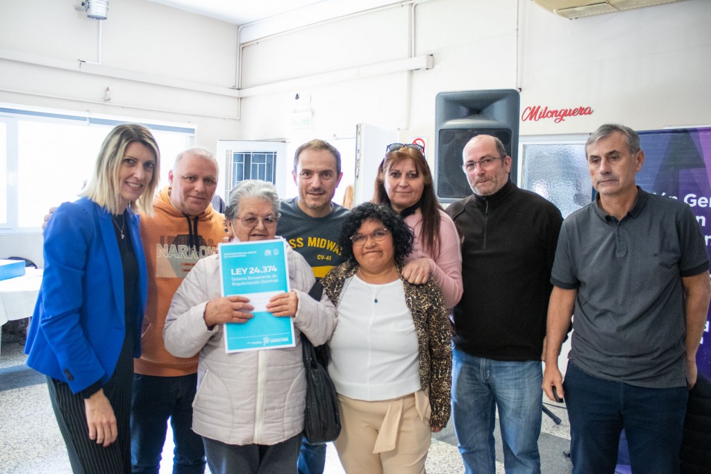 Acompañaron el acto las escribanas regularizadoras, Carolina Barassi y Carolina Yankelevich; la directora General de Gestión de Hábitat, Luciana Puglisi, su par de Entidades de Bien Público, Luis Costa, el subdirector de Banco de Tierras, José Brito y concejales de Juntos.
