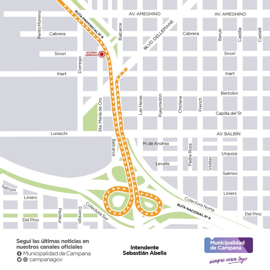 De esta manera, no se podrá ingresar a la ciudad por la bajada de la ruta bajar de la ruta a la altura de la empresa Technia hacia calle Dorrego, sino que será necesario bajar a Ruta 9 por el puente de San Felipe y volver a subir a Ruta 6 en sentido contrario.