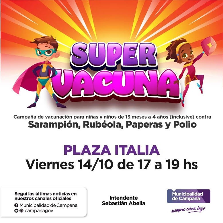 La Secretaría de Salud del Municipio vacunará de 17 a 19. También estará el sábado, de 16 a 19, en la Nueva Costanera. La campaña nacional está destinada a niños de entre 13 meses y 4 años (inclusive).
