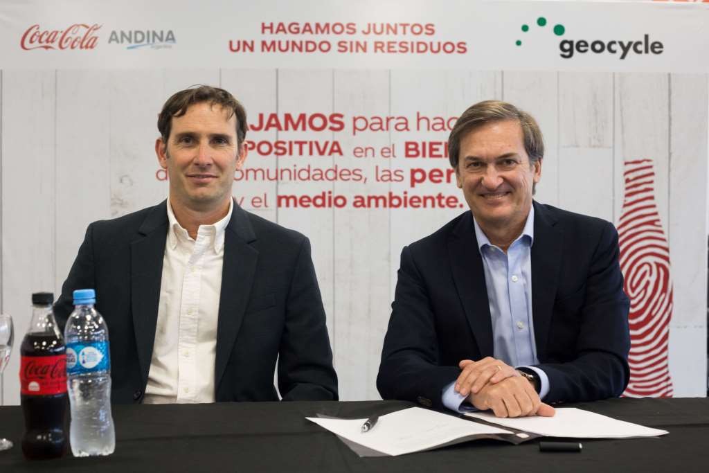 Coca-Cola Andina y Geocycle firman por primera vez en Latinoamérica un acuerdo que les permitirá avanzar en sus objetivos de sustentabilidad, reducción de la huella de carbono y recolección de envases. La alianza contempla la recolección de 800 toneladas anuales de plástico PET post consumo, esperando fortalecer aún más este acuerdo y llegar a duplicar esos números en los próximos dos años. Esta recuperación permitirá que la mayor parte de este material sea convertido en nuevas botellas a través del sistema de reciclado de envases post consumo de Coca-Cola Andina.
