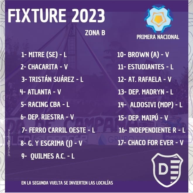 Villa Dálmine jugará en la Zona "B" y debutará como local frente a Mitre de Santiago del Estero.