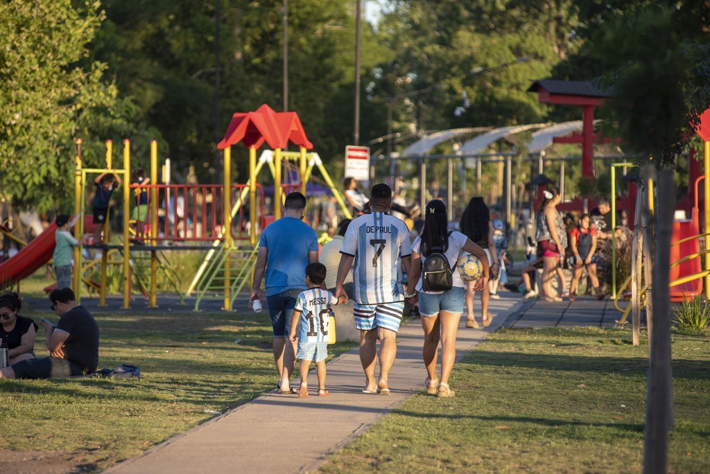 Familias jugando, amigos compartiendo una charla, chicos corriendo. También reposeras y lonas apostadas en los espacios verdes y hasta equipos de mates entre los más audaces o con alguna gaseosa refrescante.
