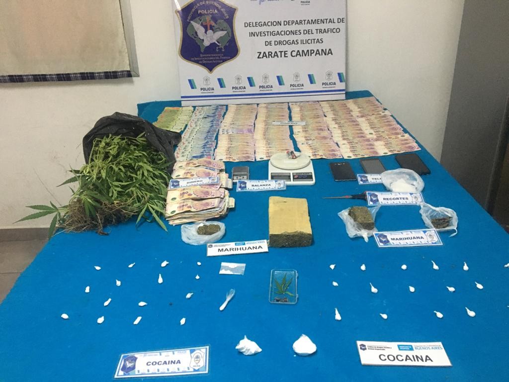 Como resultado de los allanamientos, se secuestró medio centenar de envoltorios de nylon con cocaína; 2 bolsas con dicha sustancia de forma pulverulenta; un lote o ladrillo y varios trozos compactos de marihuana; y una planta de cannabis, arrojando un total 3,2 kilos, dinero en efectivo de distintas denominaciones, telefonía celular y dos balanzas de precisión, como también elementos para la elaboración y fraccionamiento.