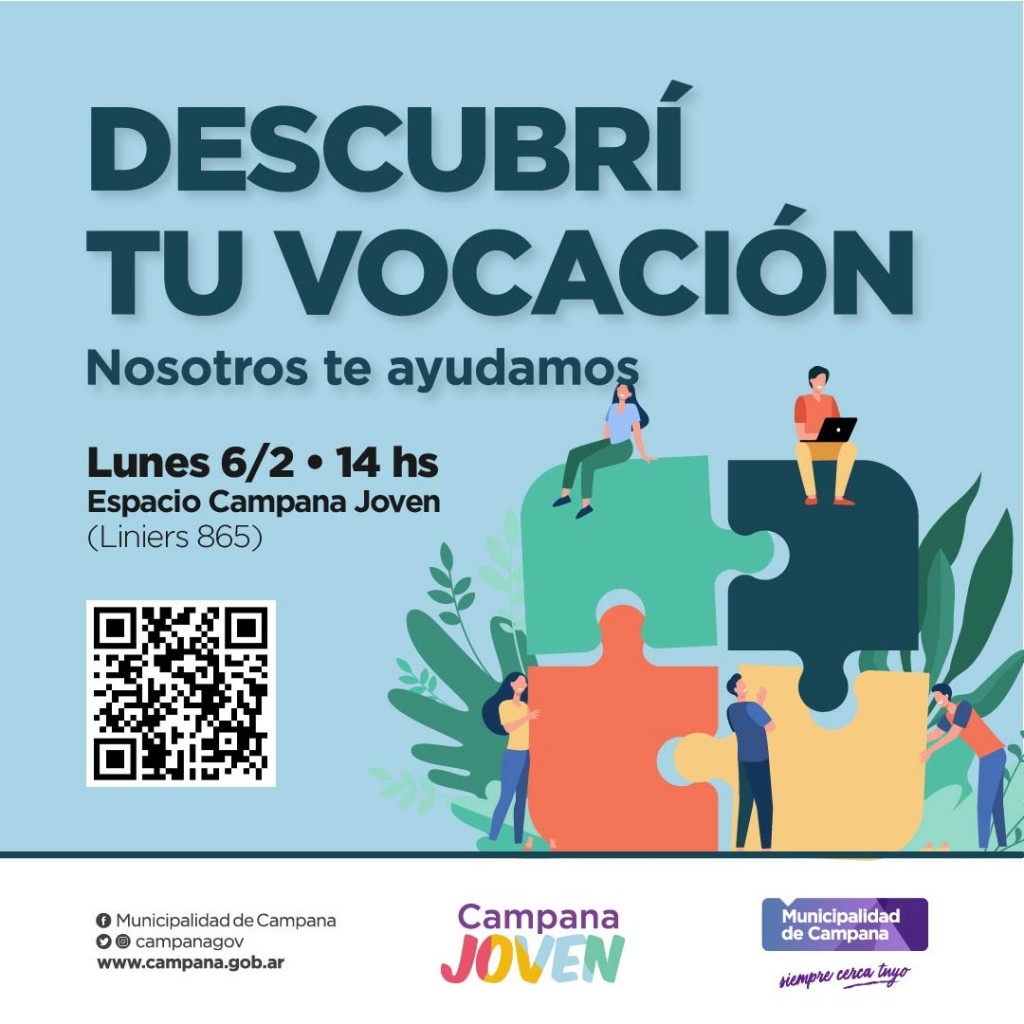 Este taller, que se realizará el lunes 6 de febrero de 14 a 15:30 en el Espacio Campana Joven (Liniers 865, esq. San Martin), tiene el objetivo de brindar la posibilidad a jóvenes que aún no se deciden qué carrera elegir o quieren descubrir en qué ramas se pueden desarrollar profesionalmente.