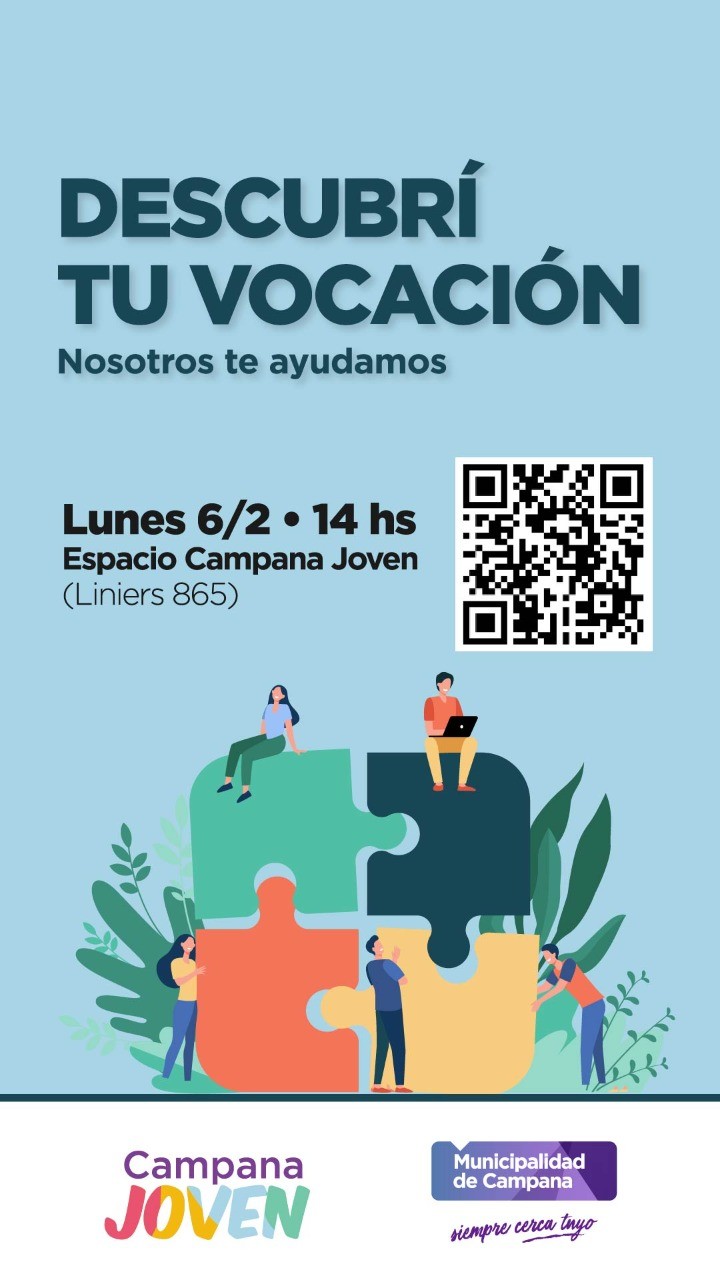 Este taller, que se realizará el próximo lunes de 14 a 15:30 en el Espacio Campana Joven (Liniers 865, esq. San Martín), tiene el objetivo de brindar la posibilidad a jóvenes que aún no se deciden qué carrera elegir o quieren descubrir en qué ramas se pueden desarrollar profesionalmente.
