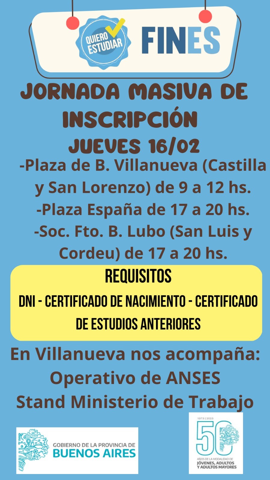 El programa inicia su ciclo lectivo de este año con un importante operativo de inscripción el día jueves 16 de febrero, que se desarrollará en la la plaza del barrio Villanueva en el horario de 9 a 12, en la plaza España de 17 a 20 y en la Sociedad de Fomento del barrio Lubo también de 17 a 20.