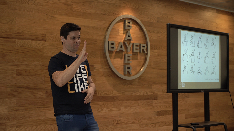 Con el fin de fomentar la diversidad e inclusión, Bayer ha establecido compromisos y medidas de integración a prácticas concretas. Junto con la organización En Buenas Manos, realizaron un taller de Lengua de Señas con el objetivo de garantizar la comunicación entre todas las personas de la sede e inauguraron la primera cafetería atendida por personas sordas.
