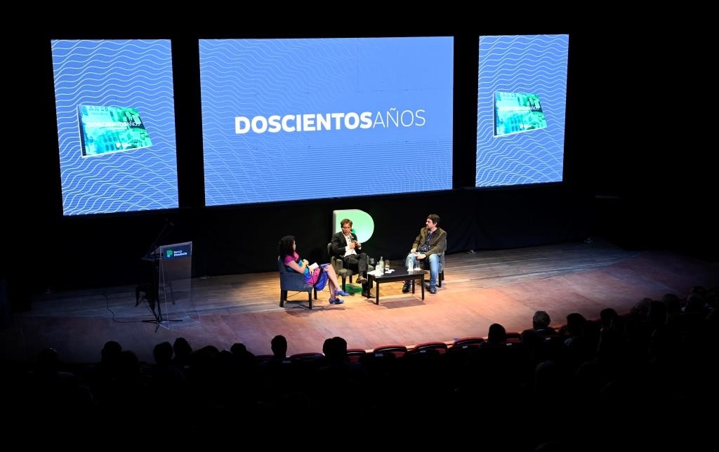 El gobernador Axel Kicillof y el historiador Felipe Pigna dialogaron sobre el Bicentenario de Banco Provincia y su rol en las diferentes etapas de la historia argentina, como parte de la presentación del libro y el corto documental Doscientos Años. Fue en el Centro Provincial de las Artes Teatro Argentino�?�de La Plata, ante un auditorio colmado por más de 300 personas. La charla estuvo moderada por la periodista Julia Mengolini y contó con la participación del presidente de la entidad financiera, Juan Cuattromo.