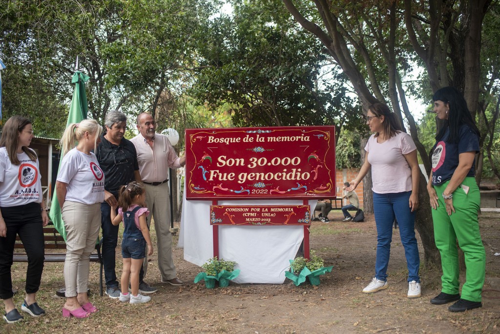 Durante el encuentro, que estuvo a cargo del director de la sede local, Hernán Pirsch y fue organizado por la Comisión por la memoria de la institución, se inauguró el “Bosque de la Memoria” que lleva un cartel que expresa “Son 30.000. Fue genocidio”.