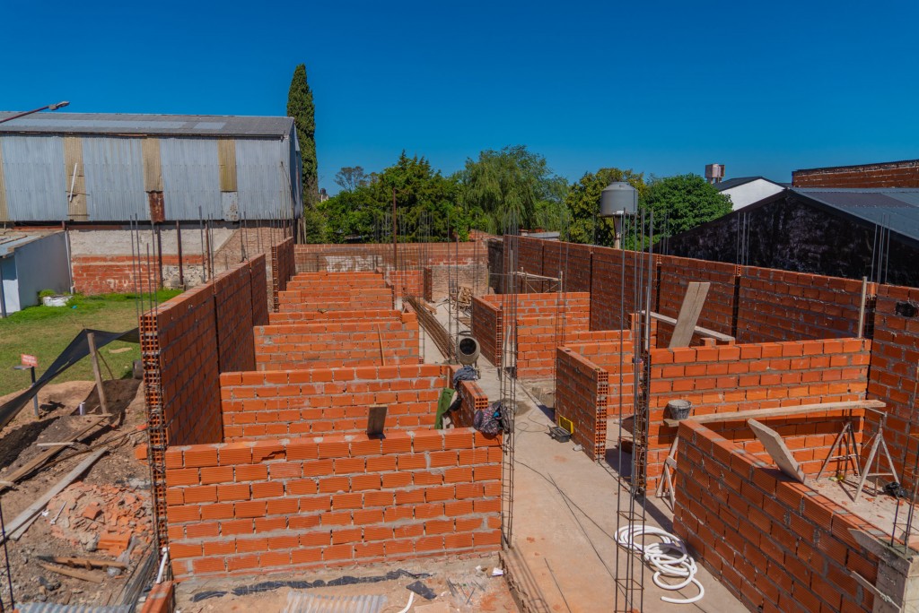 Actualmente, los trabajos ejecutados en Las Acacias alcanzan un avance del 25%, con la realización de la mampostería de ladrillos huecos y columnas de hormigón.