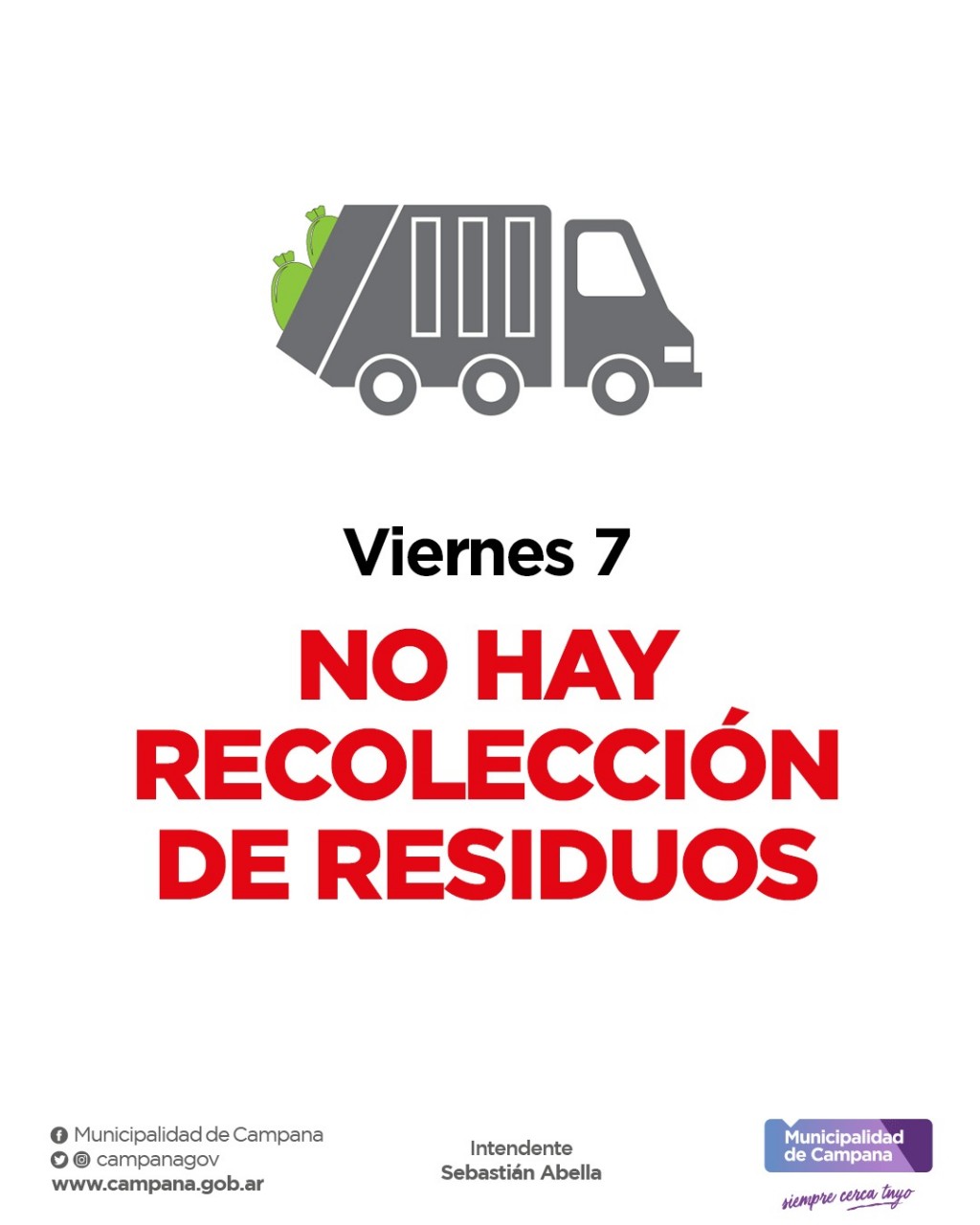 Según detallaron, el jueves 6 la recolección será en horario habitual, en tanto que, el viernes 7, la empresa Agrotécnica Fueguina no brindará ningún tipo de servicio.