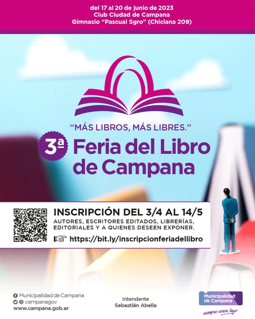 El Municipio anunció la realización de la tercera edición de la Feria del Libro para el 17,18, 19 y 20 de junio, de 10 a 19, en el Club Ciudad de Campana.