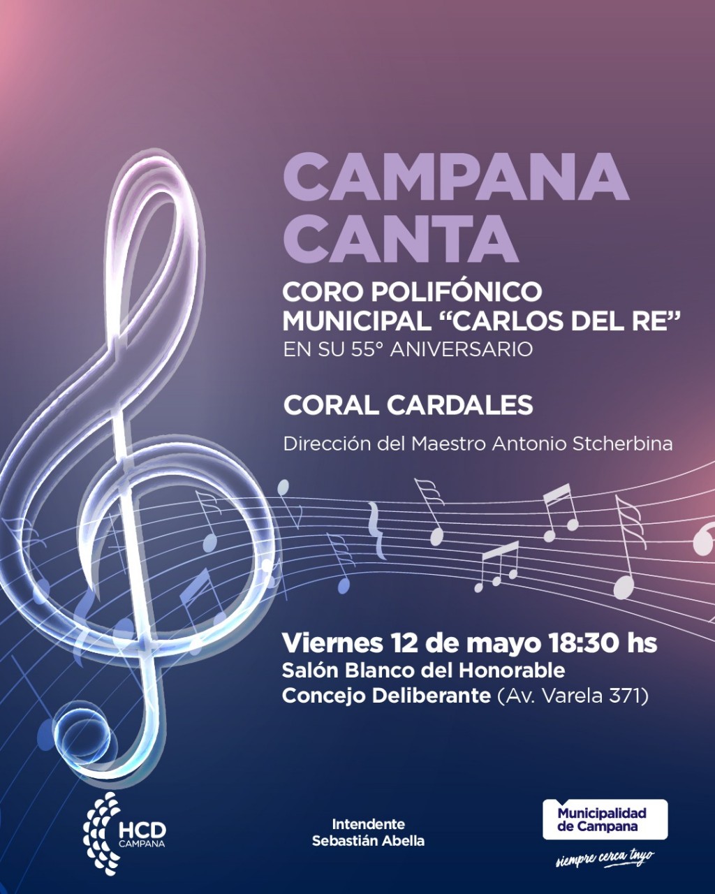 Bajo el nombre “Campana Canta”, el evento contará con la participación de los integrantes del coro que interpretarán un amplio repertorio de canciones con la dirección del Maestro Antonio Stcherbina con el acompañamiento de "Coral Cardales".
