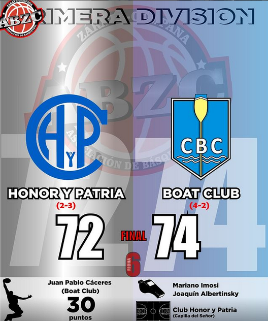 Fue victoria por 74 a 72 en un final ajustado por la Zona "A" con Juan Pablo Cáceres como máximo encestador del juego para el equipo campanense.