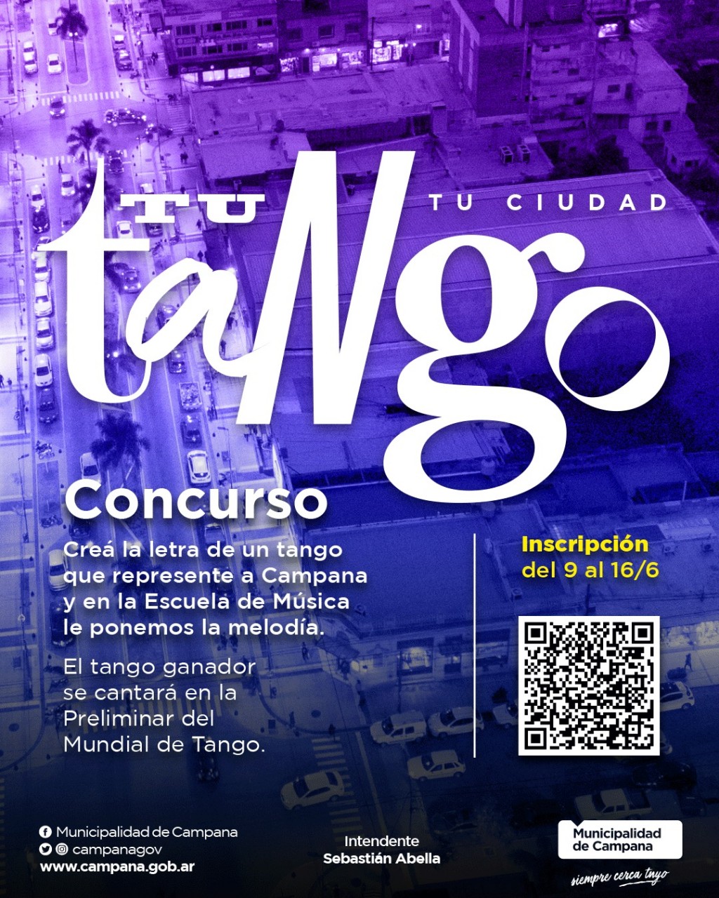 El concurso “Tu Tango, Tu Ciudad” es una iniciativa de la Dirección de Juventud, dependiente de la Secretaría de Inclusión, Educación y Cultura. Y su objetivo es seleccionar una letra que exprese sentimientos, vivencias, tradiciones o recuerdos asociados a Campana.