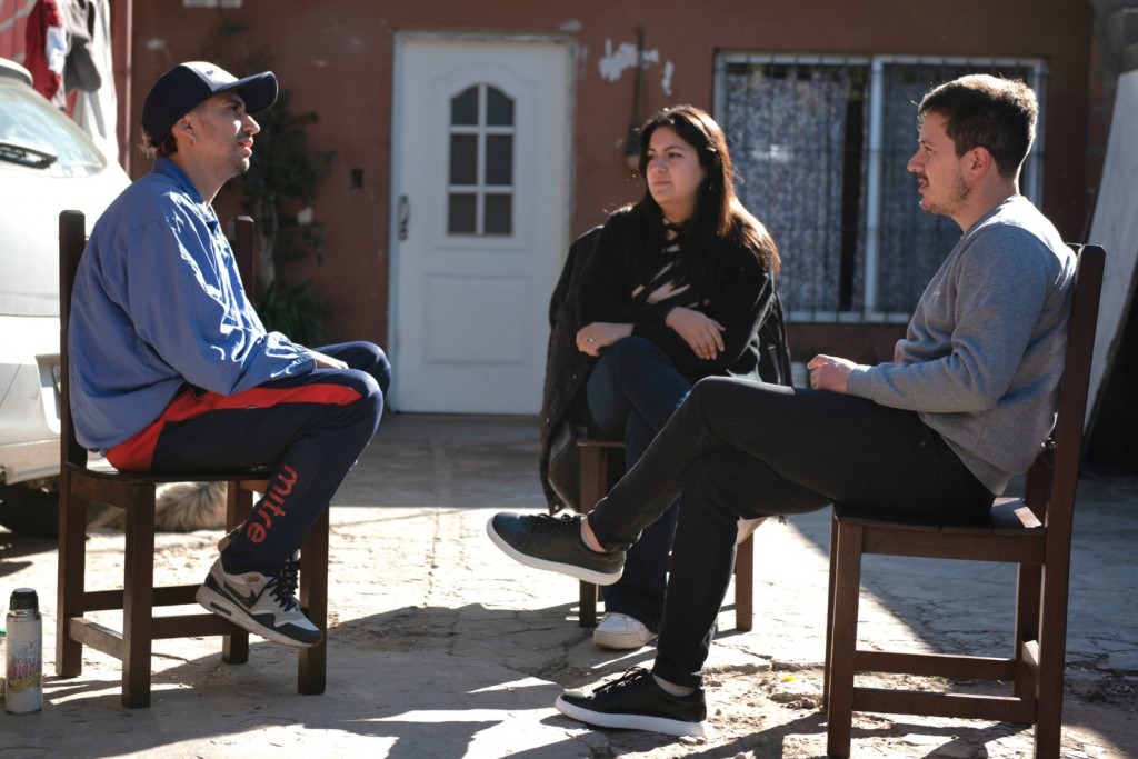 El precandidato a Intendente de Unión por la Patria, Alejo Sarna junto a la precandidata a Concejal, Julieta Ramírez –en diálogo con el bailarín Diego Nuñez- destacaron importancia de contar con “un Municipio presente que acompañe las propuestas de los artistas ofreciéndoles la infraestructura necesaria para sus actividades”.