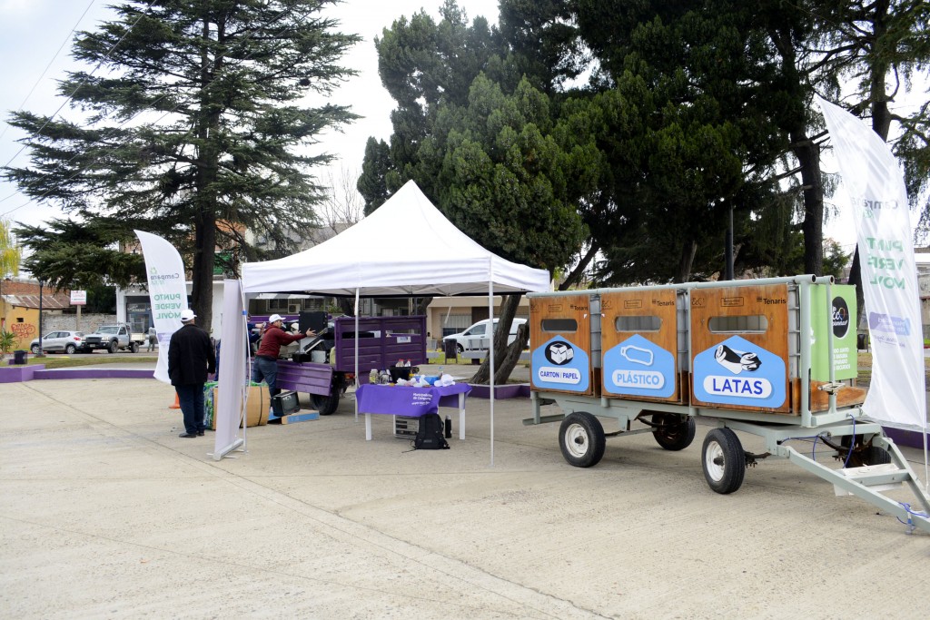 En la primera jornada, visitó la plaza España, donde vecinos contribuyeron al cuidado del medio ambiente depositando pilas, residuos eléctricos y electrónicos, cartones, plásticos, metales, aceite vegetal usado y vidrios que tendrán una nueva utilidad.