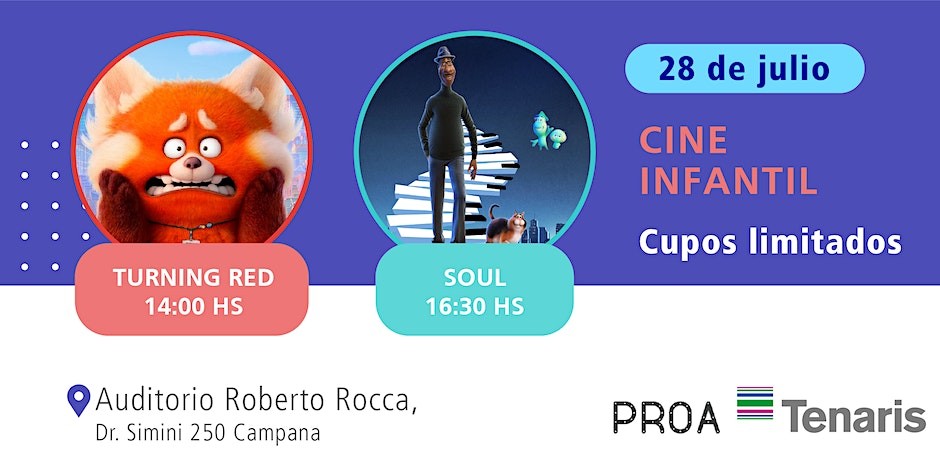 El viernes 28 de julio a las 14 horas se proyectará “Turning Red”, mientras que a las 16:30 será el turno de “Soul”. La actividad es gratuita y requiere inscripción previa.