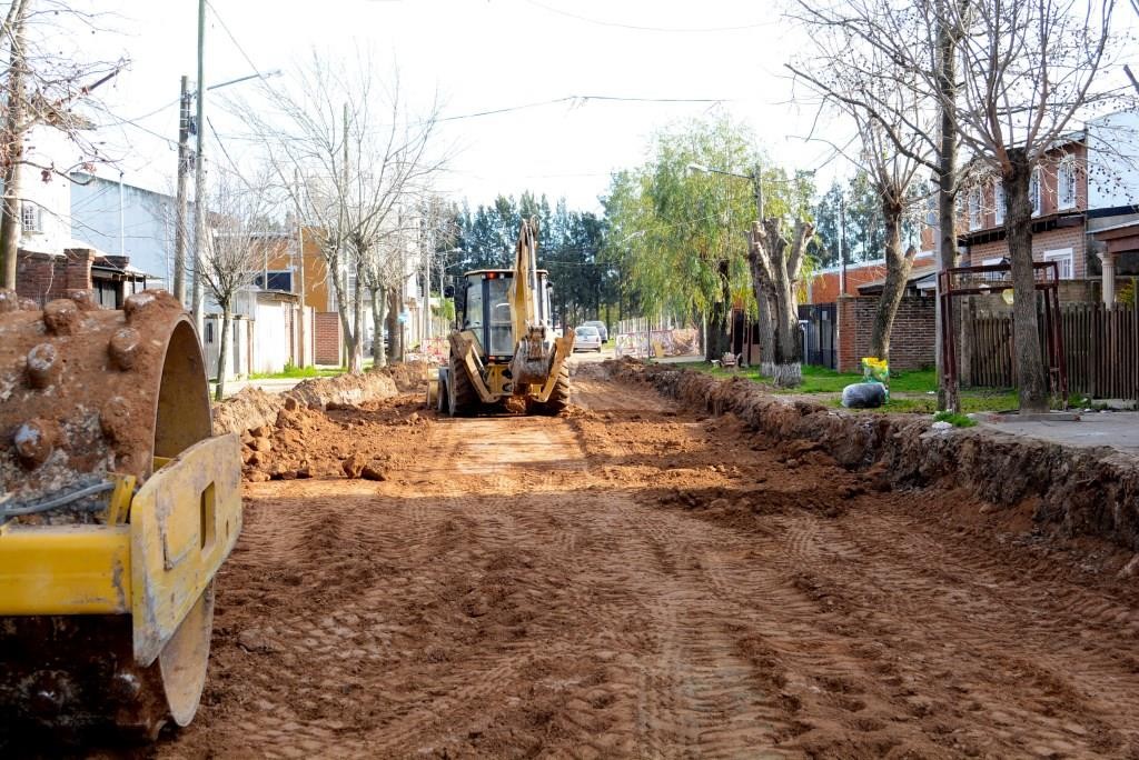 Así, tras completar la construcción de un colector cloacal principal y dos colectores secundarios por la calle Saldivar y Bellomo y Comelli, respectivamente, que permitirán un mejor escurrimiento del agua de lluvia y así eliminar de manera definitiva las zanjas, avanza con la pavimentación de las calles con cordón cuneta integrado.