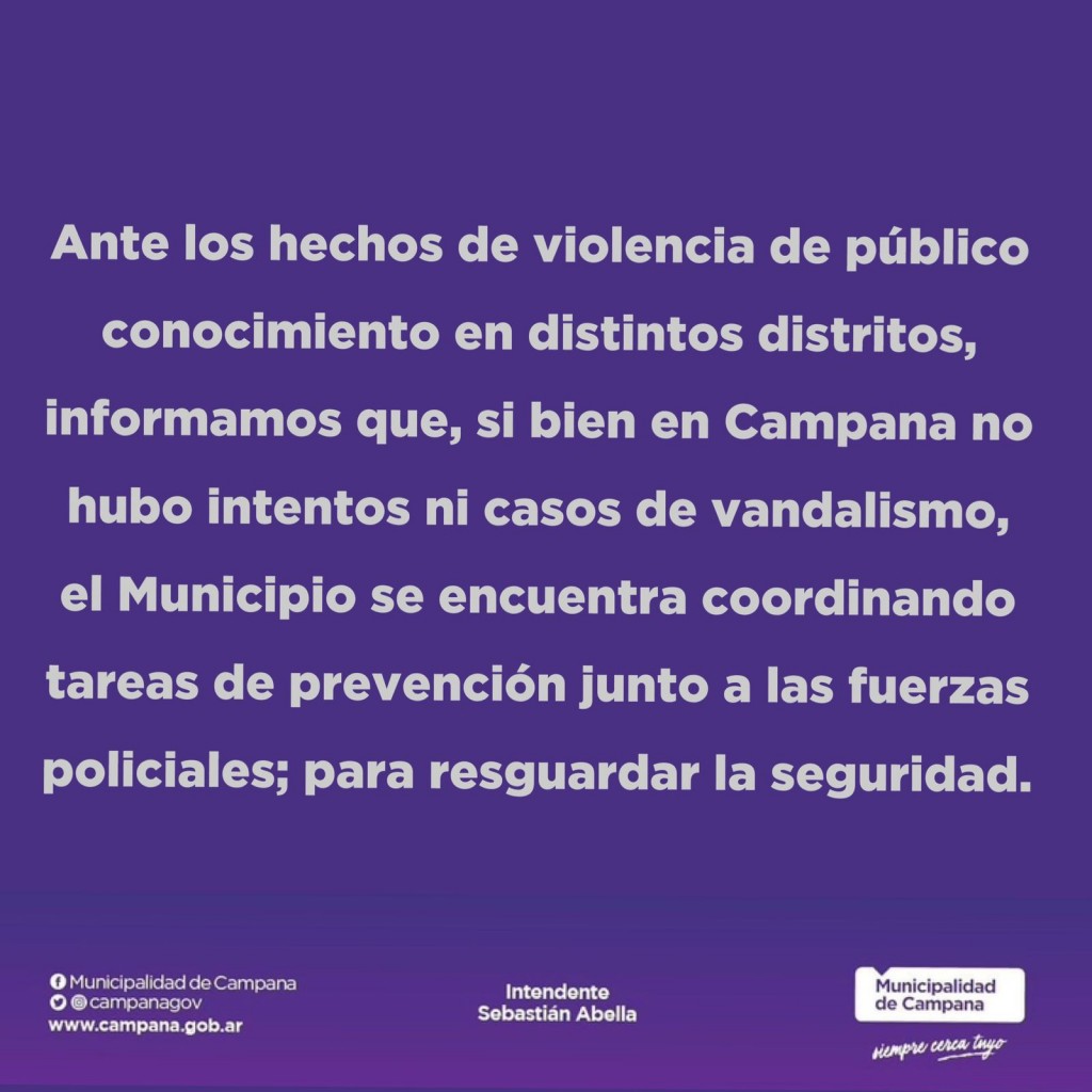 Es con referencia a las versiones sobre saqueos en la Ciudad.
