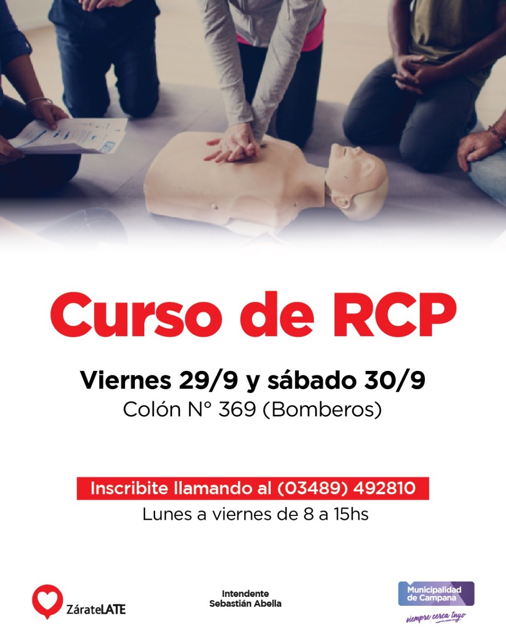 Este viernes 29 y sábado 30 de septiembre, el Municipio, junto a Zárate Late, llevará adelante la 6º edición de las capacitaciones gratuitas en Resucitación Cardio Pulmonar (RCP) destinada a personas mayores de 16 años.