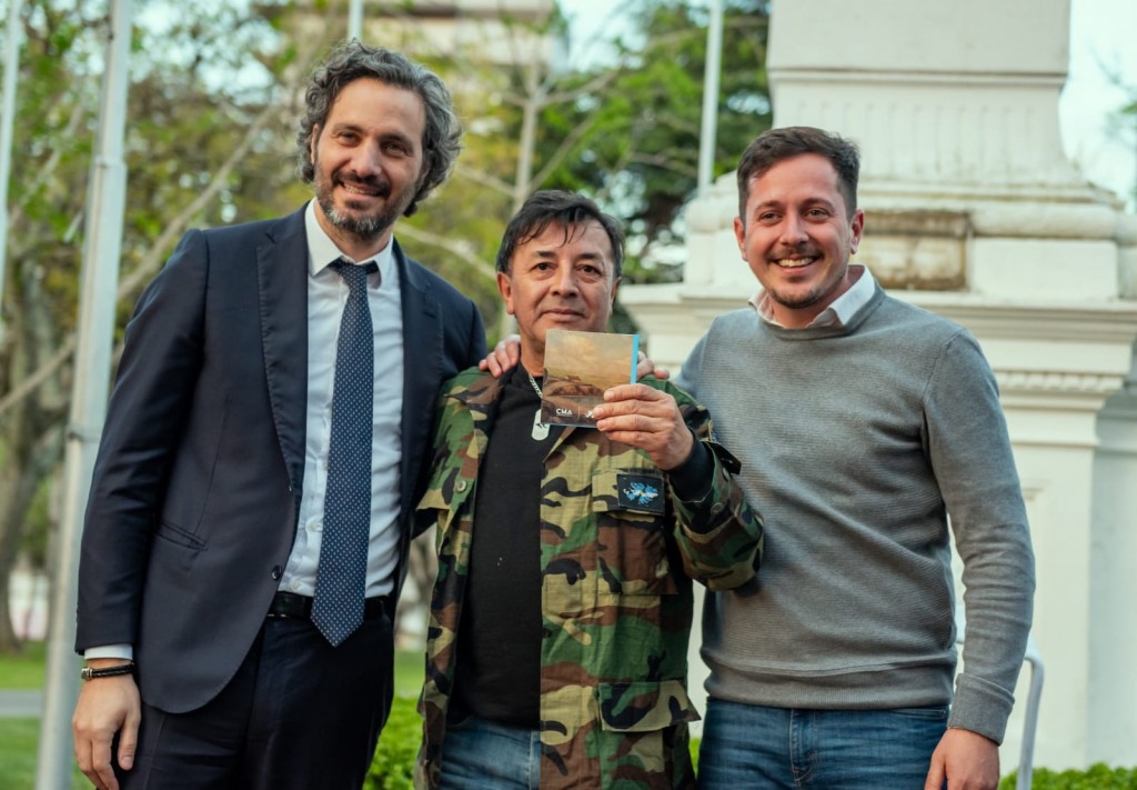 El candidato a Intendente de Unión por la Patria, Alejo Sarna y el Canciller argentino, Santiago Cafiero entregaron la Medalla Presidencial Conmemorativa a los Veteranos de la Guerra de Malvinas de la ciudad y familiares de los que ya no están. “Es un privilegio homenajearlos, abrazarlos y agradecerles que hayan defendido nuestra Patria como lo hicieron en 1982”, comentó Sarna.