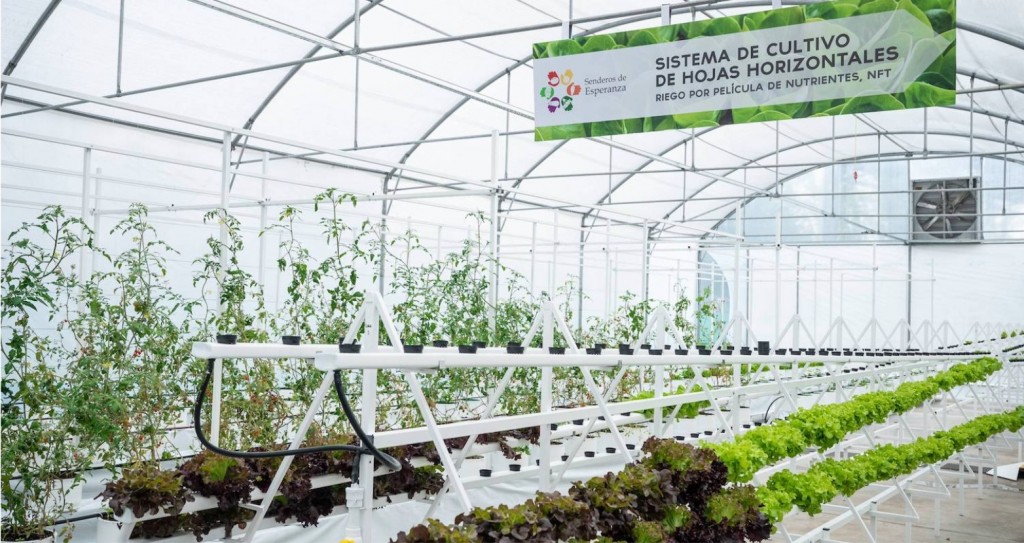 La hidroponía es un método de cultivo adaptable a cualquier espacio, sencillo, limpio y de bajo costo para producir alimentos de rápido crecimiento sin la necesidad de emplear fertilizantes y agroquímicos. El invernadero tiene 600 m2 y fue construido gracias a una inversión superior a los 180 mil dólares. Cuenta con tres sistemas de cultivos: tomates, agricultura vertical y NFT. Posee un sistema automatizado de circulación de agua, atmósfera interior, temperatura y movimiento de las cortinas para graduar la luz solar.