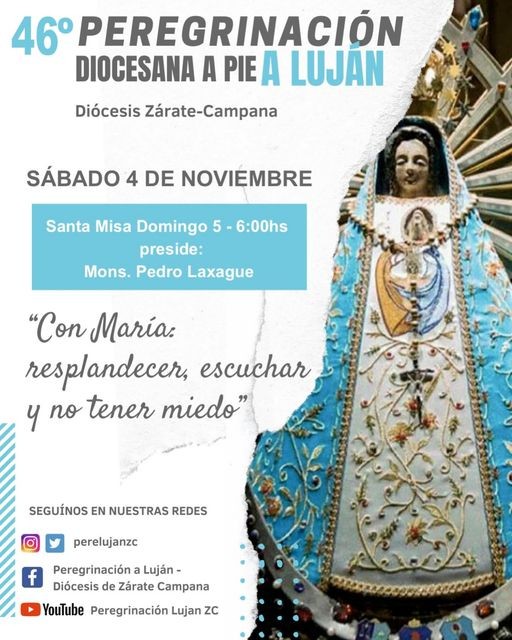 Sábado 4 de Noviembre : 46º Peregrinación a Luján del Pueblo de Dios de Zárate- Campana