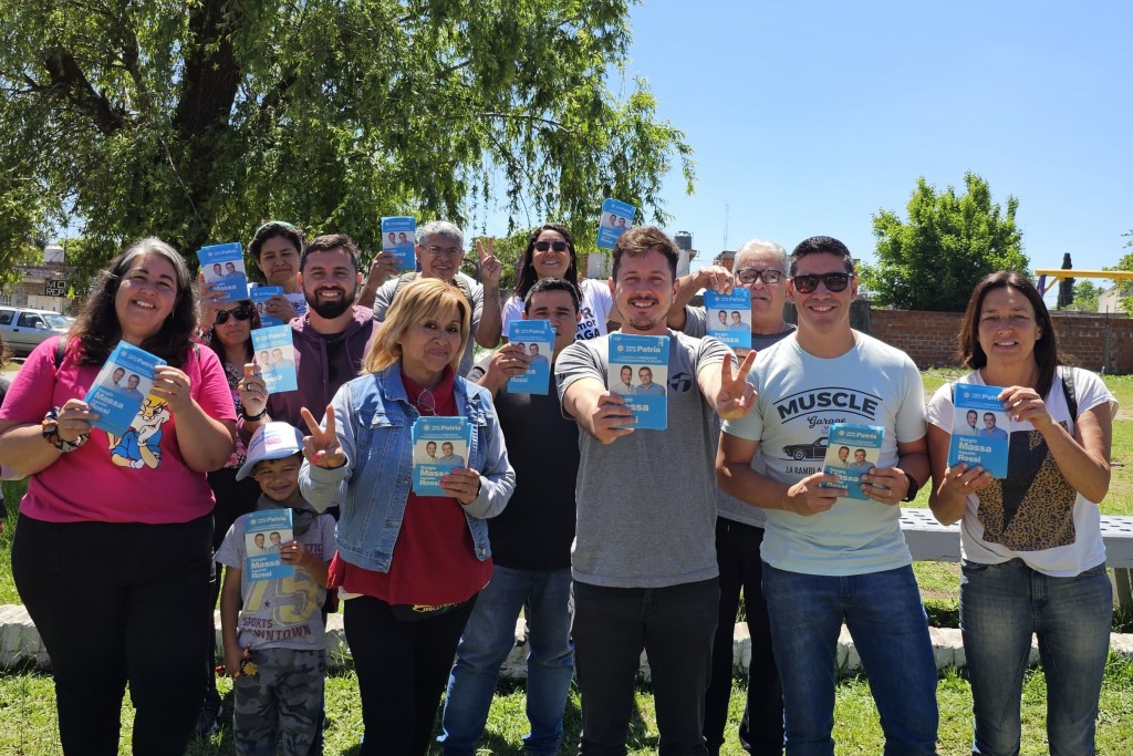 El ex candidato a Intendente, Alejo Sarna; los concejales electos, Mariano Ruiz y Walter Piriz junto a ex candidatos y el equipo de trabajo de dicho espacio político siguen dialogando con cada vecino para llevar la propuesta con la consigna “Argentina sí, Massa presidente”.