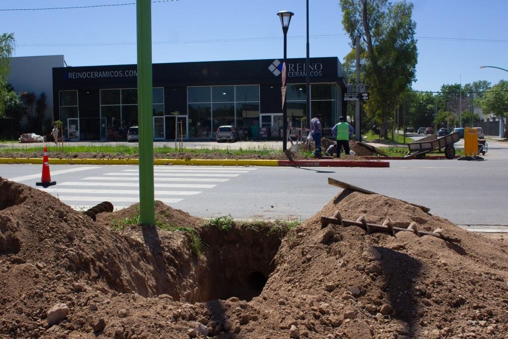 Como parte de la ampliación y remodelación de este acceso a la ciudad, se están ejecutando tareas de zanjeo por donde se instalará el tendido eléctrico a fin de abastecer a las nuevas luminarias instaladas en el parterre central y sobre la mano con sentido al centro.