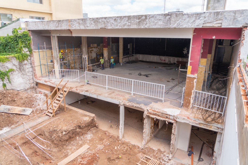 En la actualidad se trabaja en la colocación de nuevos pisos en dichos salones y se continúa con las tareas de demolición detrás del escenario.